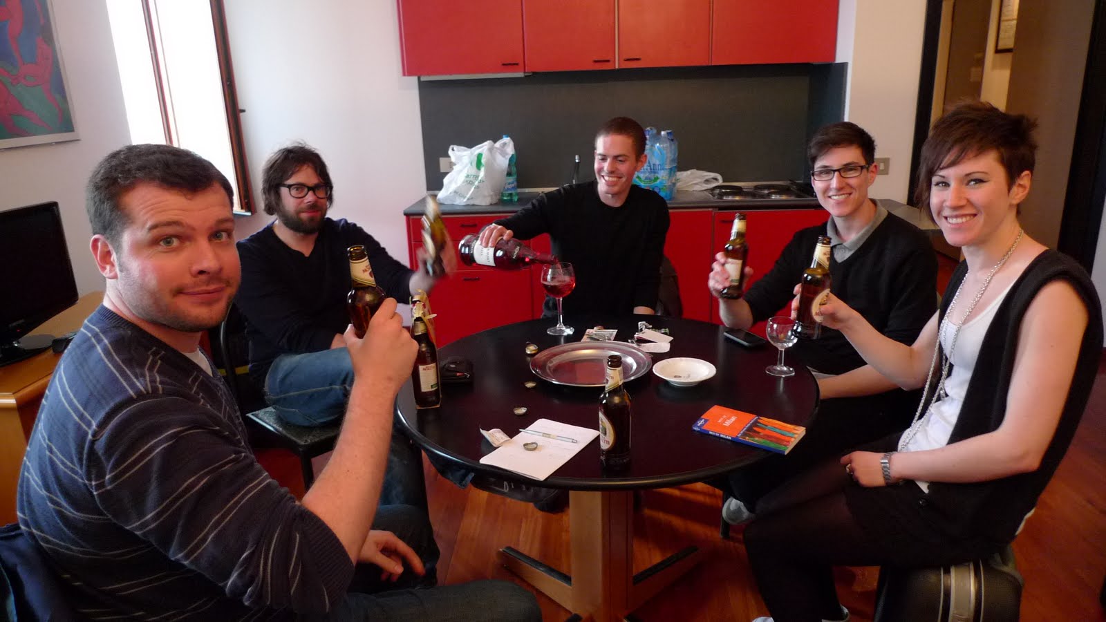 After the show: thanks to Eyjafjallajoekull erupting over in Iceland, our flights were cancelled twice, but at least we had a chance to see a little bit of the sun and Milano.