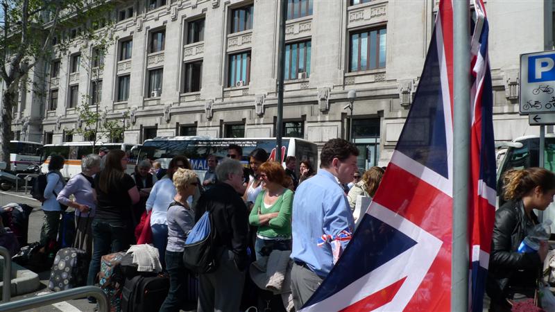 We eventually paid to get on a coach organised by the British consulate (150 Euros for the privilege). It felt like an evacuation, with flags and luggage.