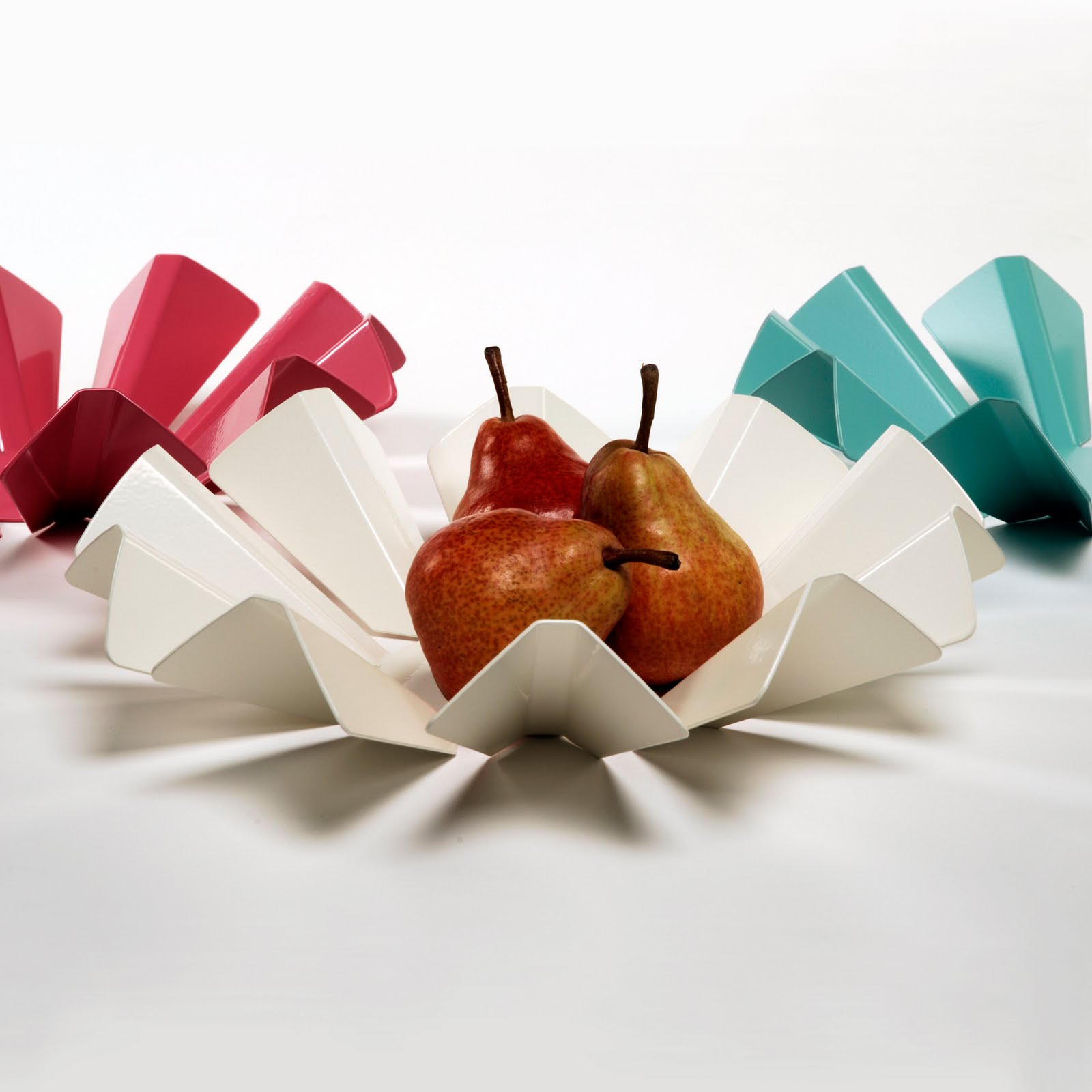 Array Bowls. Each bowl is made from one single piece of folded sheet steel. So there is very little waste from production. The Spring/Summer colours of Aqua, Mushroom and Magenta add a refreshing punch of colour to any table top. Dims: Large – H64 x Dia 284 Small – H51 x Dia 227 So if you are visiting the Milan Furniture Fair this year pop in to see us and the new products. Still life images by James Champion