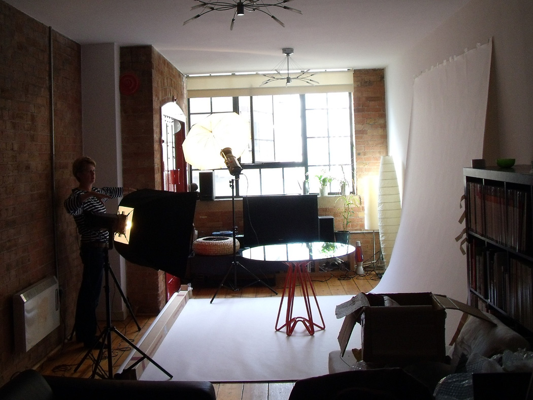 After clearing out what is usually the living room a photographic studio was born. Female efficiency for you!