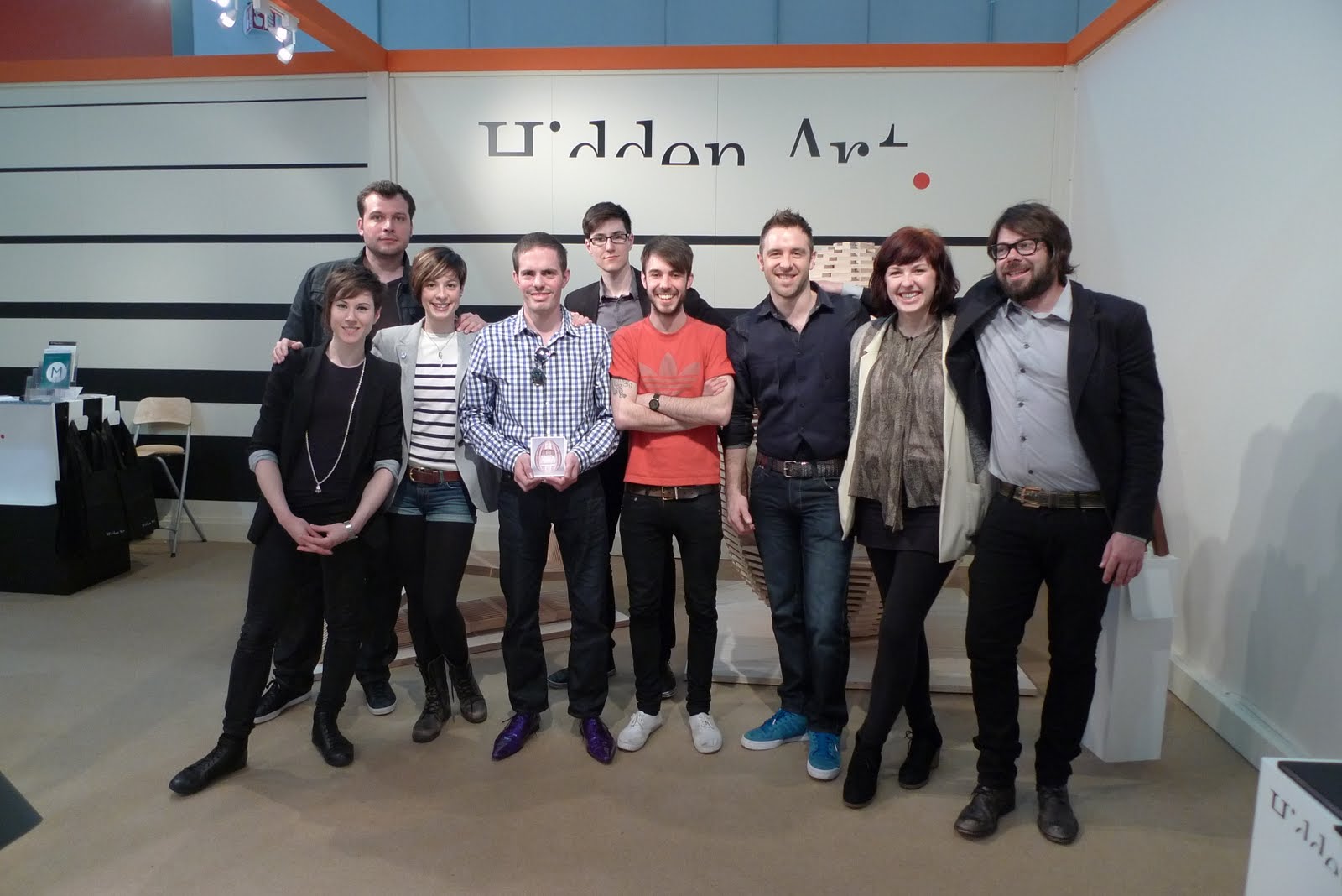Rupert Goldberg and his Bounce chaise longue and Egg revolving chair. Each wooden block is individually cut and hand finished in Ruperts East London workshop; before being meticulously assembled into various products. The visitors to the stand couldn't get enough of the egg, with many getting a spin. Detail: inside the egg!
